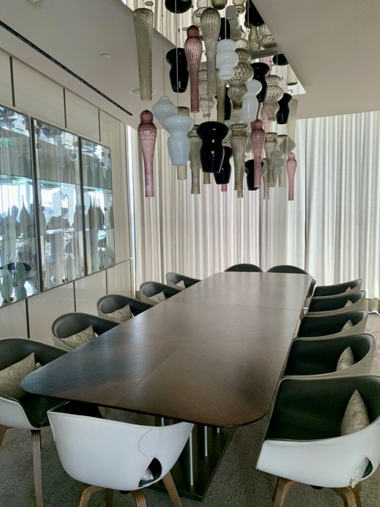 Die Hotelfachschüler_innen kamen in den Genuss, das im Jahr 2018 eröffnete Luxushotel (*****S) besichtigen zu dürfen. In dem einstündigen Rundgang lernten die Teilnehmenden unter anderem das Restaurant „Lakeside“ (1 Michelin-Stern), die Bar, Veranstaltungsräume und eine Suite kennen. Dabei wurde vor allem deutlich, wie Architektur und Natur mit unbestechlichem Luxus in Hotel und Restaurant in Einklang gebracht werden können.