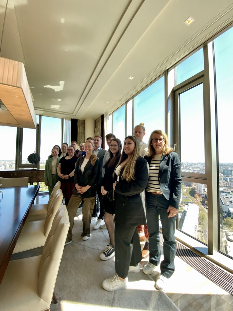Ein weiteres Hotel der Luxusklasse stand auf dem Besichtigungsprogramm der Studienfahrt. Hier beeindruckte vor allem der Blick aus einer Luxussuite über die atemberaubende Skyline von Berlin.